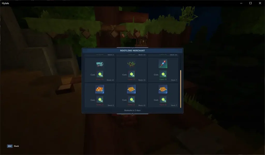 Hytale Rootling Merchant Inventory (Trade Goods, Price/Cost, & Inventory Schedule)