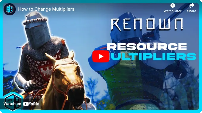 In the medieval survival game Renown, server hosts can edit resource multipliers to customize the gameplay experience. Increasing these multipliers allows players to gather materials like wood and stone much faster, which reduces the time spent on repetitive grinding. This shift in focus lets players get to the more exciting aspects of the game server, such as building large castles and engaging in large-scale PvP combat, more quickly.