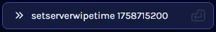 6. Enter the following command with the timestamp from step 3: setserverwipetime <timestamp> .![]()
