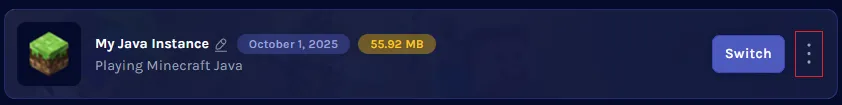 5. Open the Settings Menu next to the desired instance.