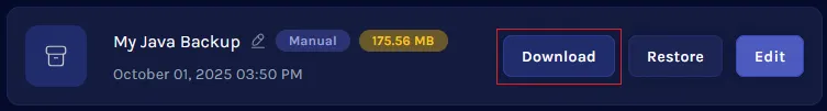 4. Hover over the desired backup, then choose Download.