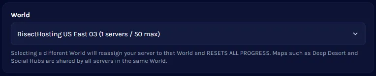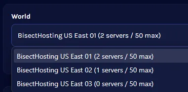 5. From the dropdown menu, select a new world. If a world has 50 servers, that world cannot be selected.